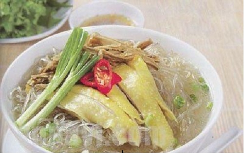 - Gà rửa sạch, nấu lấy nước dùng, vớt gà ta xé miến vừa ăn.